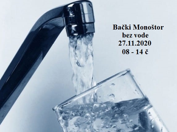 Poštovani korisnici usluga snabdevanja vodom u Bačkom Monoštoru, obaveštavamo Vas da će dana 27.11.2020. godine (petak) u periodu od 8-14 časova doći do obustave snabdevanja vodom, zbog radova na novoj Fabrici vode u Bačkom Monoštoru. Po završetku radova, snabdevanje vodom će biti odmah omogućeno. JKP "Vodovod" Bezdan.